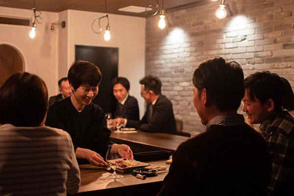“飲む人同士” ではなく “飲む人と注ぎ手” の対話。 たくさん飲める人と適度に楽しみたい 人とで異なる心地よさや、その日の気分やコンディションに寄り沿った「次の一杯」をグラスにそそぎます。